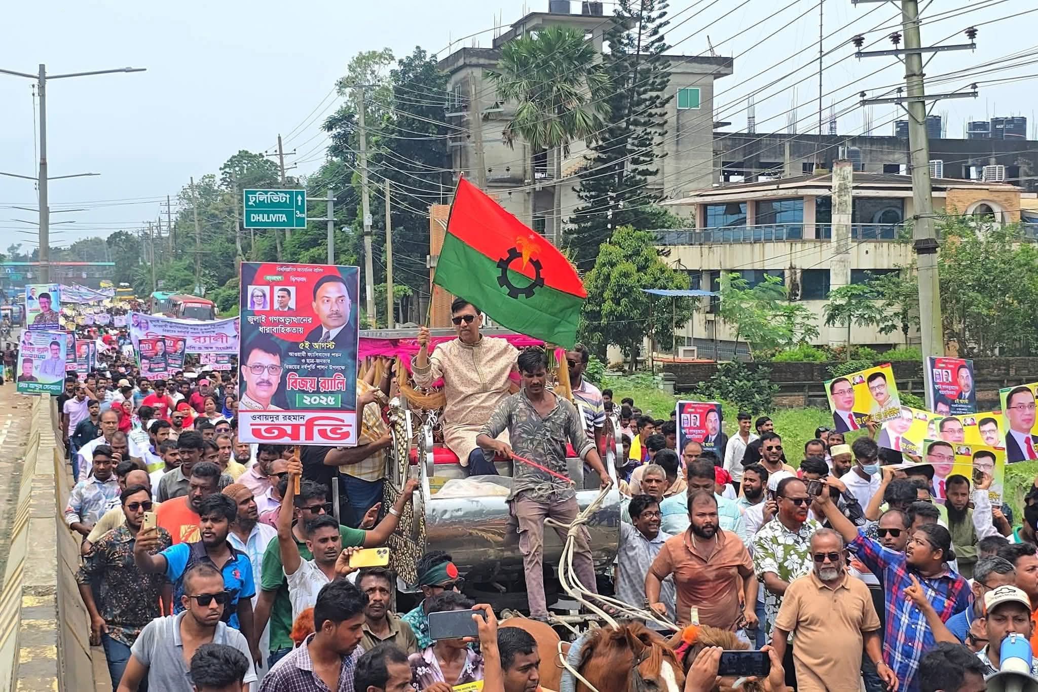 মঙ্গলবার দুপুরে ঢাকা আরিচা মহাসড়কের আশুলিয়ার নয়ারহাট এলাকা থেকে বিএনপির কেন্দ্রীয় কমিটির সহ-পরিবার কল্যাণ বিষয়ক সম্পাদক ডা.দেওয়ান মোঃ সালাউদ্দিন বাবুর নেতৃত্বে একটি বিশাল র্যালী বের হয়।
