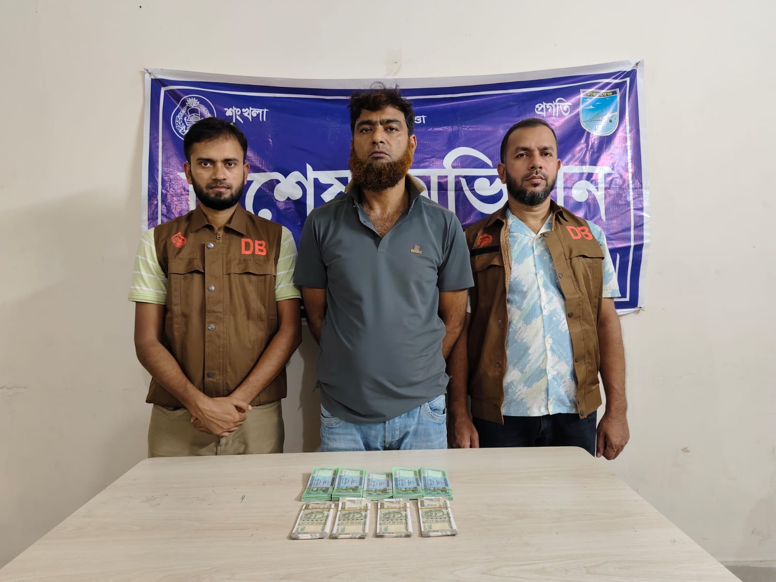 ঢাকা জেলা পুলিশ সুপার মোঃ আনিসুজ্জামান (পিপিএম) এর নির্দেশনায় বিশেষ অভিযান পরিচালনাকালে ঢাকা জেলার ডিবি (উত্তর) এর অফিসার ইনচার্জ মোঃ জালাল উদ্দিন এর নেতৃত্বে এসআই (নিঃ) মোহাম্মদ আব্দুল মুত্তালিব সংগীয় অফিসার ও ফোর্স সহ অদ্য ১৬/০৮/২৫ খ্রি. তারিখ ১৭.৩০ ঘটিকায় আশুলিয়া থানাধীন আশুলিয়া কুন্ডলবাগ পুকুরপাড় এলাকা হইতে আসামী ১। মোঃ রফিকুল ইসলাম @ রফিক (৪২), পিতা-মৃত মান্নান সিকদার, মাতা-মৃত কুলসুম বেগম, সাং-বাখরখাঠী, থানা-বাকেরগঞ্জ, জেলা-বরিশাল, এ/পি সাং-কুন্ডলবাগ পুকুরপাড়, থানা-আশুলিয়া, জেলা-ঢাকাকে গ্র্রেফতার করেন। ধৃত আসামীর হেফাজত হইতে (ক) ভারতীয় জাল ৫০০ রুপি মানের নোট ৭৯ (উনআশি) টি। মোট রুপি ৩৯,৫০০/-(উনচল্লিশ হাজার পাঁচশত) রুপি। তন্মধ্যে রুপি ক্রমিক নং 6BT778673 (২২x৫০০)=১১,০০০, 6BT778676 (১৯x৫০০)=৯,৫০০, 6BT778678 (১৯x৫০০)=৯,৫০০, 6BT778679 (১৯x৫০০)=৯,৫০০ সর্বমোট ১১,০০০+৯৫০০+৯৫০০+৯৫০০=৩৯৫০০/- রুপি। প্রতি রুপির গায়ে ইংরেজীতে RESERVE BANK OF INDIA FIVE HUNDRED RUPEES সহ হিন্দিতে বিভিন্ন লেখা আছে। (খ) বাংলাদেশী জাল ৫০০ টাকার মোট ২৩২ (দুইশত বত্রিশ) টি। মোট জাল টাকা ১,১৬,০০০/-(এক লক্ষ ষোল হাজার) টাকা। তন্মধ্যে টাকার ক্রমিক নং-জঙ ৪৭০০৯২০ (৭৯X৫০০=৩৯,৫০০/- জঙ ৪৭০০৯২৯(৪২X৫০০=২১,০০০/-) জঙ ৪৭০০৯২৪ (১৯X৫০০= ৯,৫০০/-) জঙ ৪৭০০৯২২ (৫৪X৫০০=২৭,০০০/-), জঙ ৪৭০০৯২৬(৩৮X৫০০= ১৯,০০০/-) সর্বমোট জাল টাকার (৩৯,৫০০+২১,০০০+৯,৫০০+২৭,০০০+১৯,০০০)=১,১৬,০০০/-(এক লক্ষ ষোল হাজার) জাল টাকা উদ্ধার করেন।