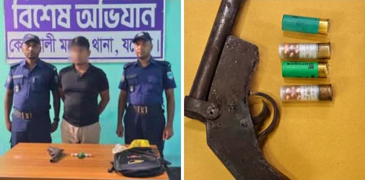 কোতয়ালী মডেল থানার অফিসার ইনচার্জ মোঃ আবুল হাসনাত খান এর তত্বাবধানে কোতয়ালী মডেল থানার পুলিশ পরিদর্শক (তদন্ত) কাজী বাবুল হোসেন এর নেতৃত্বে এসআই(নিঃ) আল আমিন হোসেন সঙ্গীয় অফিসার ও ফোর্স সহ অভিযান পরিচালনাকালে ইং- ১৬/০৯/২০২৫ খ্রিঃ বিকাল ১৭.৪৫ ঘটিকার সময় যশোর কোতয়ালী মডেল থানাধীন ৪নং নোয়াপাড়া ইউনিয়নের বড় গোপালপুর গ্রামাস্থ ফুলতলা বাজার হতে শীর্ষ সন্ত্রাসী মোঃ ইমলাক হোসেন মোল্যা (৩০) কে ০১ (এক) টি ওয়ান শুটারগান এবং ০৪ রাউন্ড কার্তুজ সহ আটক করে। আটককৃত আসামীর পিসি/পিআর যাচাই কালে দেখা যায় যে, উক্ত আসামীর বিরুদ্ধে দস্যুতা, ডাকাতির প্রস্তুতি, খুন, অস্ত্র, বিস্ফোরক সহ সর্বমোট ১৩ (তের) টি মামলা আছে।