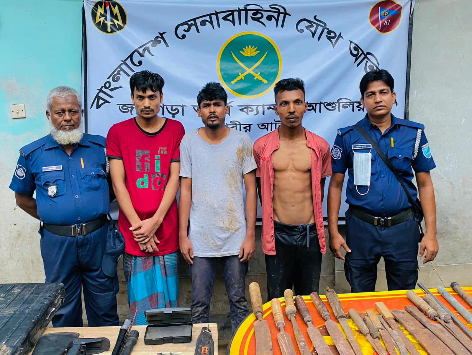 অভিযানে অস্ত্রধারী গ্যাংয়ের ৩ জন সদস্যকে আটক করা হয়।