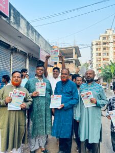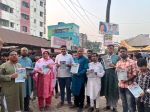 বাংলাদেশ জাতীয়তাবাদী মৎস্যজীবী দলের সাধারণ সম্পাদক, দেশনেএী সাংস্কৃতিক পরিষদ আশুলিয়া থানার সাধারণ সম্পাদক হাজী এম এ কালাম মাদবরের নেতৃত্বে ৬ নং ওয়ার্ডের বাসা বাড়িতে ও বিভিন্ন দোকানে দোকানে রাস্তার আশে পাশে বাজারে ৩১ দফা লিফলেট বিতরণ করেন।