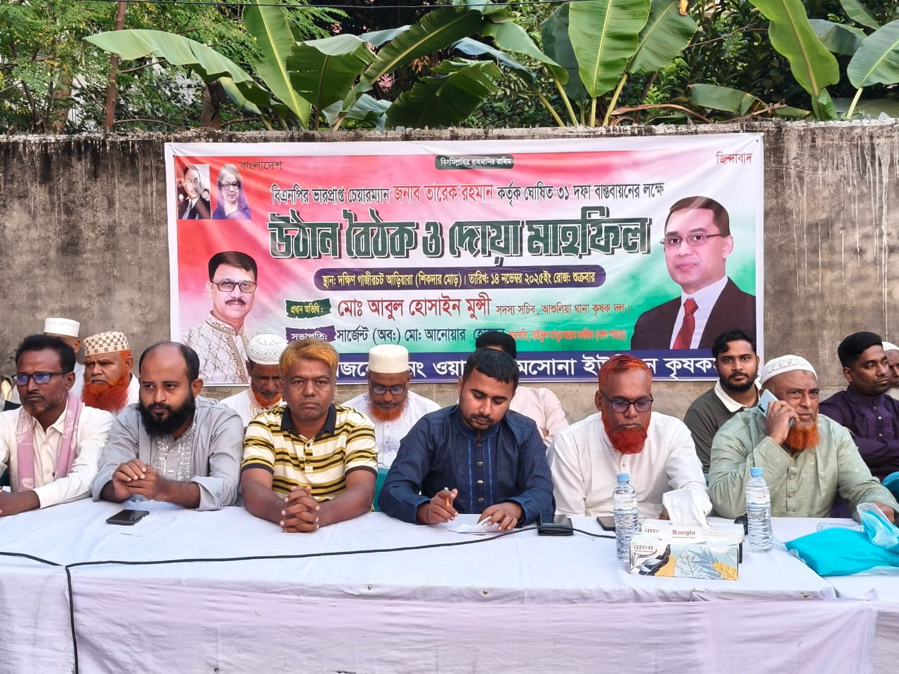 আশুলিয়ায় উঠান বৈঠক ও আলোচনা সভার আয়োজন করেছেন কৃষক দলের নেতৃবৃন্দ।শুক্রবার বিকালে আশুলিয়ার দক্ষিণ গাজিরচট শিকদারবাগ এলাকায় ধামসোনা ইউনিয়ন ৭নং ওয়ার্ড কৃষক দলের উদ্যোগেে এই উঠান বৈঠক ও আলোচনা সভার আয়োজন করা হয়।এসময় ডা: দেওয়ান মোহাম্মদ সালাউদ্দিন বাবুকে ধানের শীষ প্রতীকে বিপুল ভোটে জয়যুক্ত করে ঢাকা-১৯ আসনটি উপহার দেওয়া সহ তারেক জিয়ার ৩১ দফা বাস্তবায়নের মধ্য দিয়ে দলটিকে আরও সুসংগঠিত করার প্রতিশ্রুতি ব্যাক্ত করেন নেতাকর্মীরা।