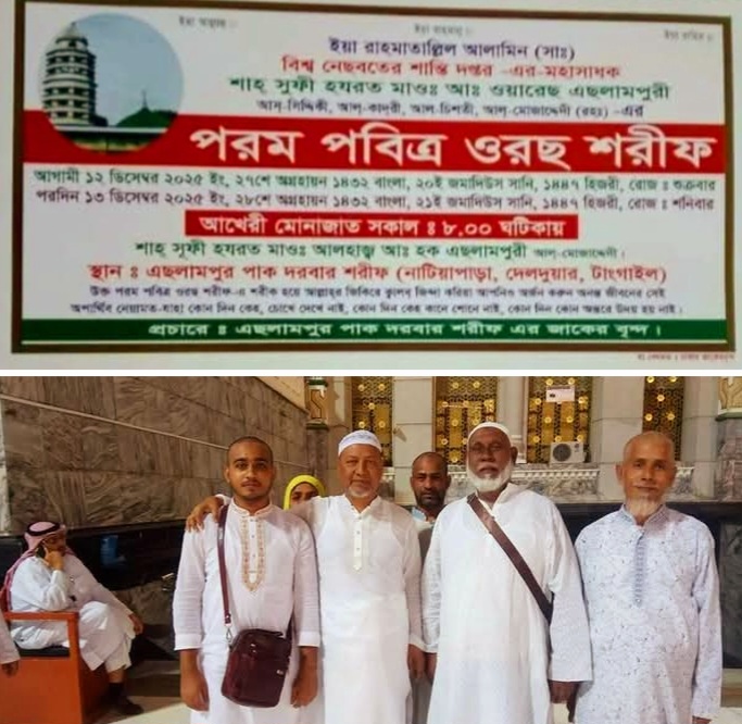 টাঙ্গাইলের দেলদুয়ার উপজেলার নাটিয়াপাড়া এলাকায় অবস্থিত এছলামপুর পাক দরবার শরীফে আগামী ১২ ও ১৩ ডিসেম্বর দুই দিনব্যাপী পবিত্র ওরছ শরীফ অনুষ্ঠিত হবে। ইয়া রহমানির আলামিন (সা.)–এর বিনম্র ভালোবাসায় আয়োজিত এ বার্ষিক ওরছকে কেন্দ্র করে ইতোমধ্যে সব প্রস্তুতি সম্পন্ন করেছে দরবার কর্তৃপক্ষ।