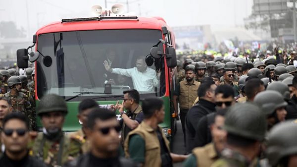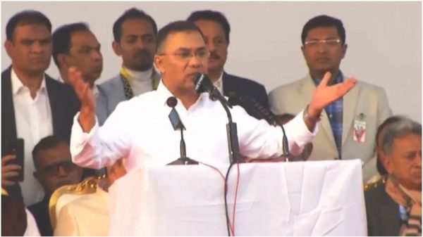 রাজধানীর পূর্বাচল ৩০০ ফিট এলাকায় আয়োজিত সংবর্ধনা অনুষ্ঠানস্থলে পৌঁছেছেন তারেক রহমান। বৃহস্পতিবার (২৫ ডিসেম্বর) বিকেল ৩টা ৫০ মিনিটের দিকে সংবর্ধনাস্থলে পৌঁছান তিনি।এর আগে, এদিন বেলা ১১ টা ৪০ মিনিটে তাকে বহনকারী বিমান বাংলাদেশ এয়ারলাইনসের বোয়িং ৭৮৭-৮ ড্রিমলাইনার ফ্লাইট নং বিজি-২০২ হজরত শাহজালাল আন্তর্জাতিক বিমানবন্দরে অবতরণ করে। পরে সেখানে সংক্ষিপ্ত আনুষ্ঠানিকতা শেষে দুপুর ১২ টা ৪০ মিনিটের দিকে সংবর্ধনা অনুষ্ঠানের উদ্দেশে রওয়ানা দেন তিনি।