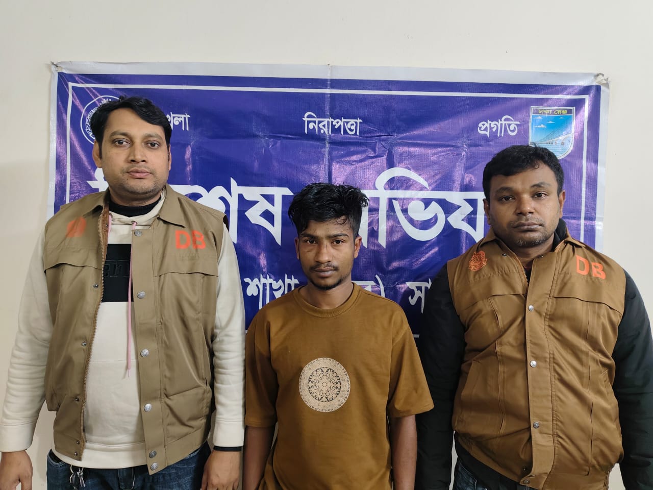 ঢাকা জেলা পুলিশ সুপার মোঃ মিজানুর রহমান এর নির্দেশনায় বিশেষ অভিযান পরিচালনাকালে ঢাকা জেলার ডিবি (উত্তর) , এর অফিসার ইনচার্জ সাইদুল ইসলাম এর নেতৃত্বে এসআই (নিঃ) মোঃ শাহাদাৎ সংগীয় অফিসার ও ফোর্স সহ গত ১০/০১/২০২৬ খ্রি. তারিখ রাত ২২:৩০ ঘটিকায় আশুলিয়া থানাধীন গাজীরচট এলাকা হইতে ডাকাত/ছিনতাইকারী দলের সদস্য ১। মোঃ মিনহাজ আলী মুন্সি (২৭), পিতা—মোঃ সাবেদ আলী মুন্সি, মাতা—মোহরজান বেগম, সাং—গাজিরচট মুন্সিপাড়া, থানা—আশুলিয়া, জেলা—ঢাকাকে গ্রেফতার করেন।