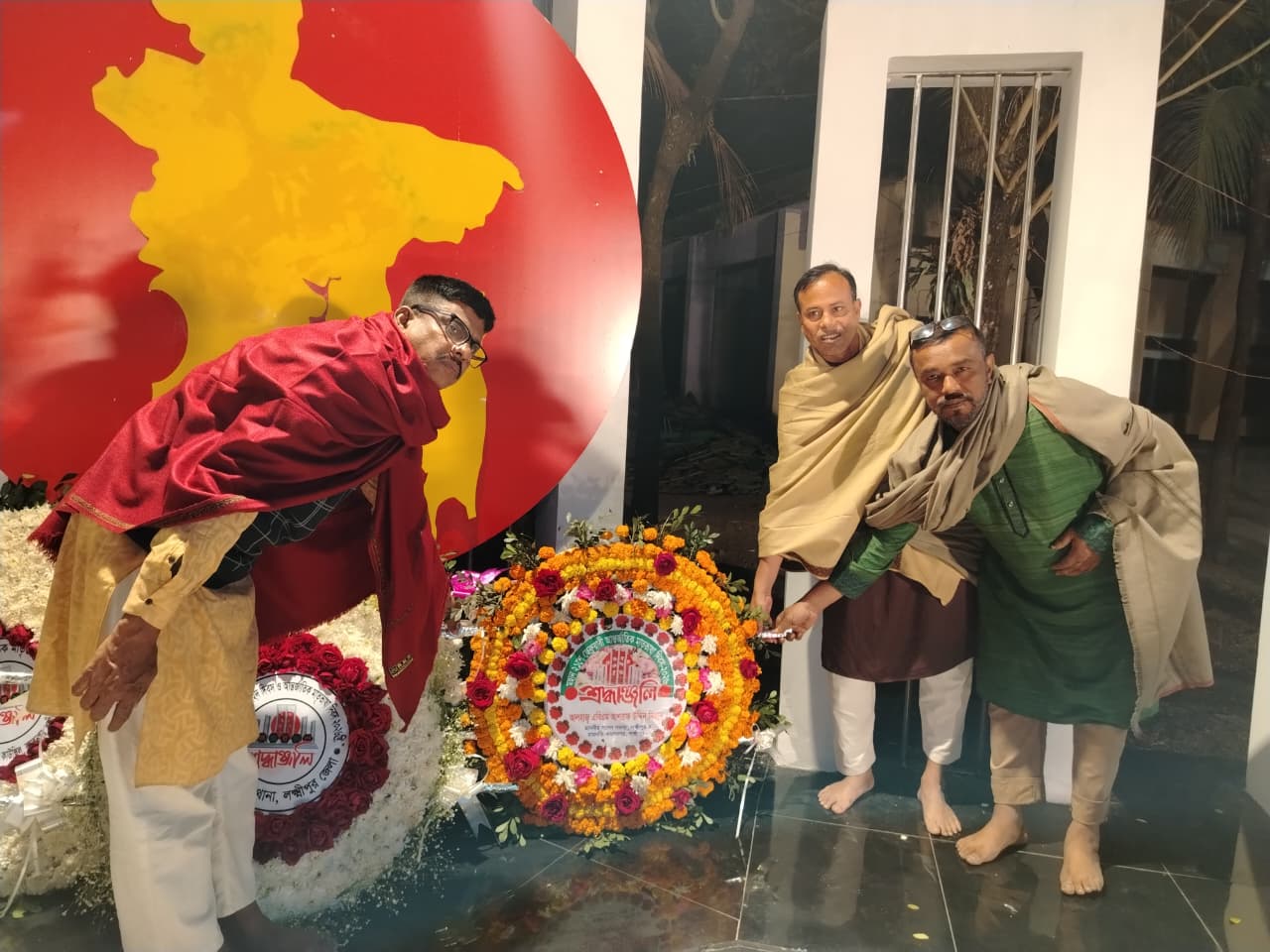 শনিবার (২১ ফেব্রুয়ারি) প্রথম প্রহর রাত ১২টা ০১ মিনিটে লক্ষ্মীপুর-৪ সংসদীয় আসনের সাবেক সংসদ সদস্য ও বিএনপির কেন্দ্রীয় নেতা জননেতা এ.বি.এম আশরাফ উদ্দিন নিজান-এর পক্ষ থেকে উপজেলা শহীদ মিনারে পুষ্পস্তবক অর্পণ করা হয়।