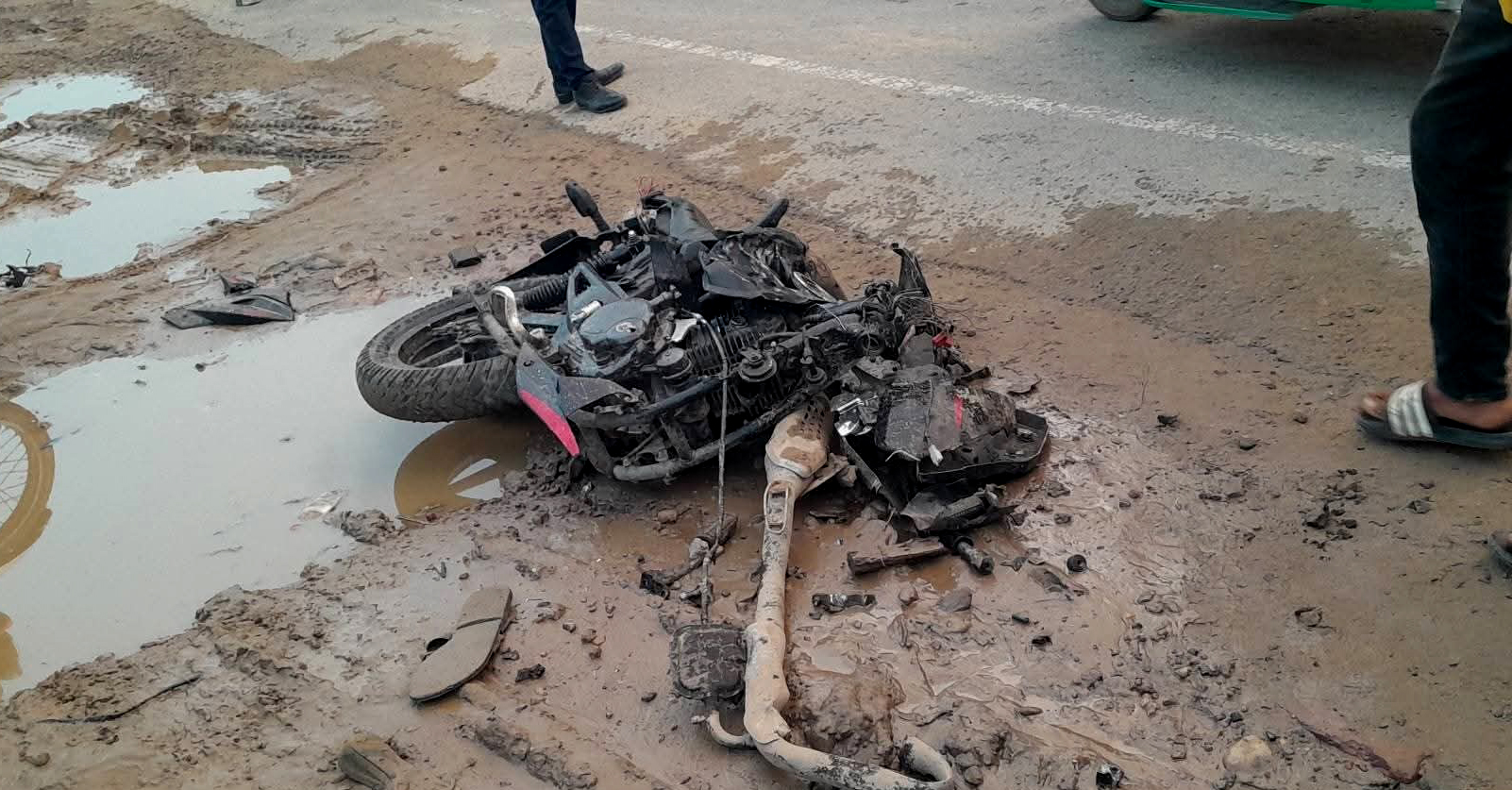 এতে তিনি ছিটকে পড়ে যান এবং একই সময়ে সামনে থাকা একটি ট্রাকের নিচে চাপা পড়েন।
