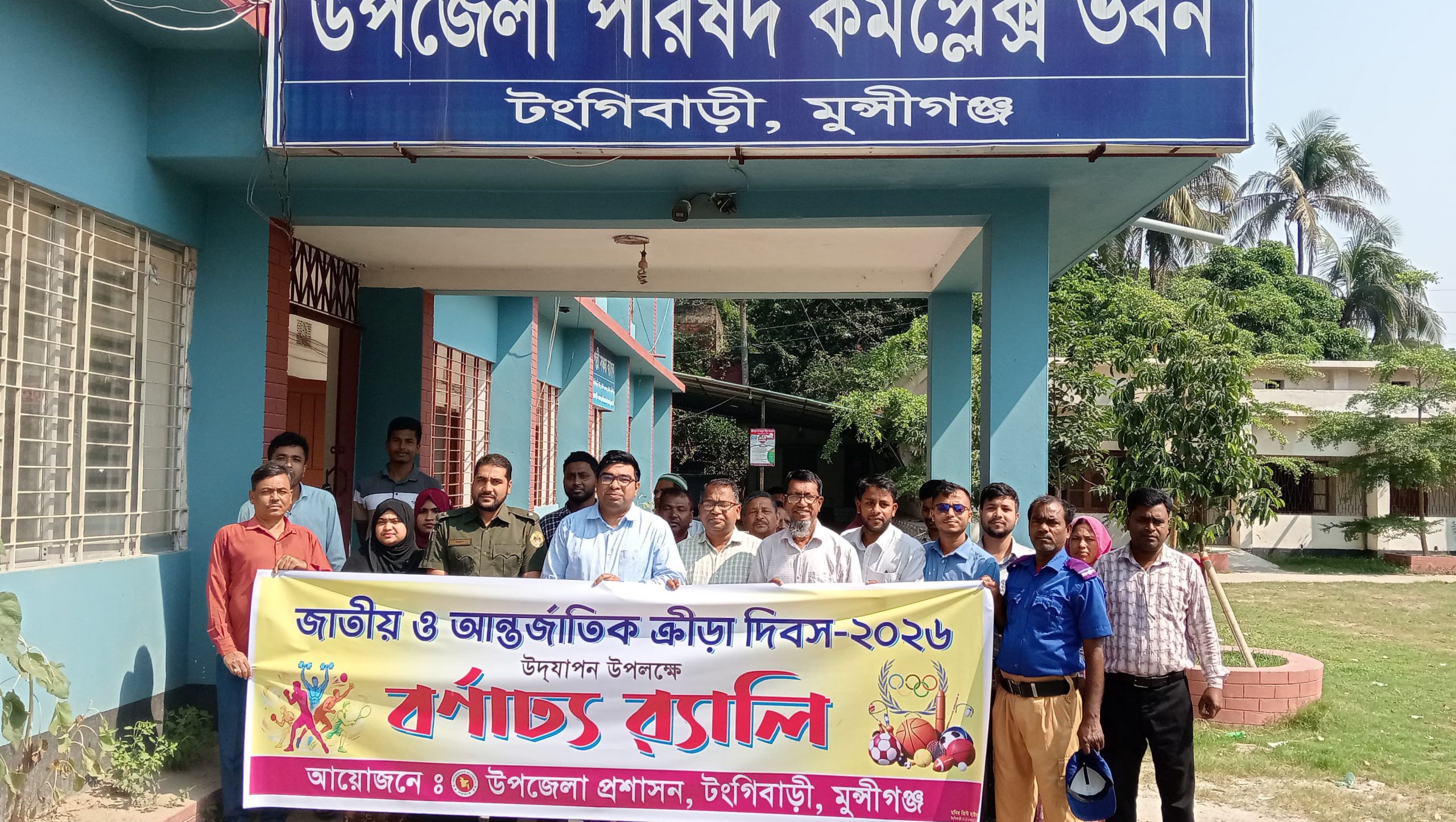 জাতীয় ও আন্তর্জাতিক ক্রীড়া দিবস উপলক্ষে মুন্সীগঞ্জের টঙ্গীবাড়ীতে বর্ণাঢ্য র্যালি অনুষ্ঠিত হয়েছে। সোমবার (৬ এপ্রিল) সকাল ৯ টায় উপজেলা প্রশাসনের উদ্যোগে এ কর্মসূচির আয়োজন করা হয়। উপজেলা সহকারী কমিশনার (ভূমি) মো. ওয়াজেদ ওয়াসীফ এর নেতৃত্বে একটি বর্ণাঢ্য র্যালি বের করা হয়। র্যালিটি উপজেলা পরিষদ প্রাঙ্গণ থেকে শুরু হয়ে উপজেলার প্রধান প্রধান সড়ক প্রদক্ষিণ করে পুনরায় একই স্থানে এসে শেষ হয়। র্যালিতে অংশগ্রহণকারীরা ক্রীড়ার গুরুত্ব তুলে ধরেন।
