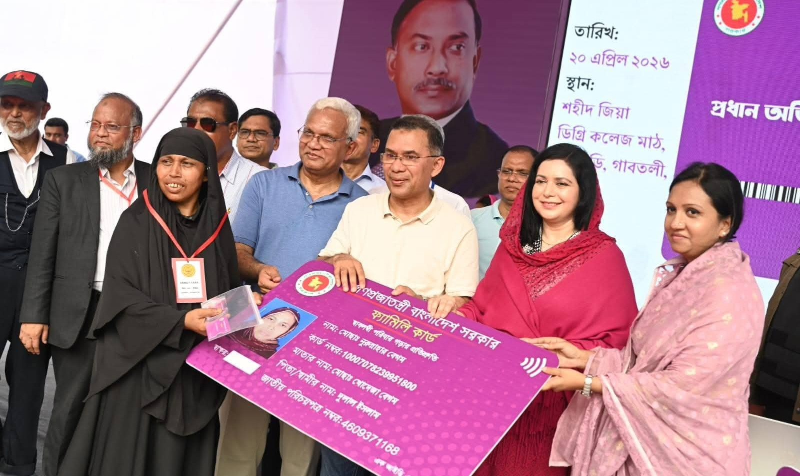 নারীর ক্ষমতায়নের মাধ্যমে পরিবারের সার্বিক জীবনমান উন্নয়নে বাংলাদেশ জাতীয়তাবাদী দল (বিএনপি)-এর অন্যতম নির্বাচনী অঙ্গীকার ‘ফ্যামিলি কার্ড’ কার্যক্রমের আনুষ্ঠানিক যাত্রা শুরু হয়েছে।এ লক্ষ্যে দলটির চেয়ারম্যান তারেক রহমান আজ সোমবার (২০ এপ্রিল ২০২৬) বগুড়ার গাবতলী উপজেলার বাগবাড়ীতে অবস্থিত শহীদ জিয়া ডিগ্রি কলেজ মাঠ প্রাঙ্গণে এই কর্মসূচির শুভ উদ্বোধন করেন।