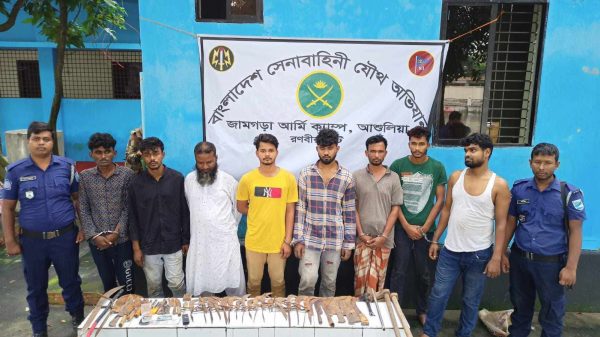 মোঃ রবিউল ইসলাম, সাভার উপজেলা প্রতিনিধি: ঢাকার উপশহর আশুলিয়ায় যৌথ বাহিনীর বিশেষ অভিযানে ছাত্র-জনতা হত্যা মামলার আসামিসহ আটজনকে গ্রেপ্তার করা হয়েছে। গ্রেপ্তারের সময় তাদের হেফাজত থেকে ২০টিরও বেশি দেশীয়